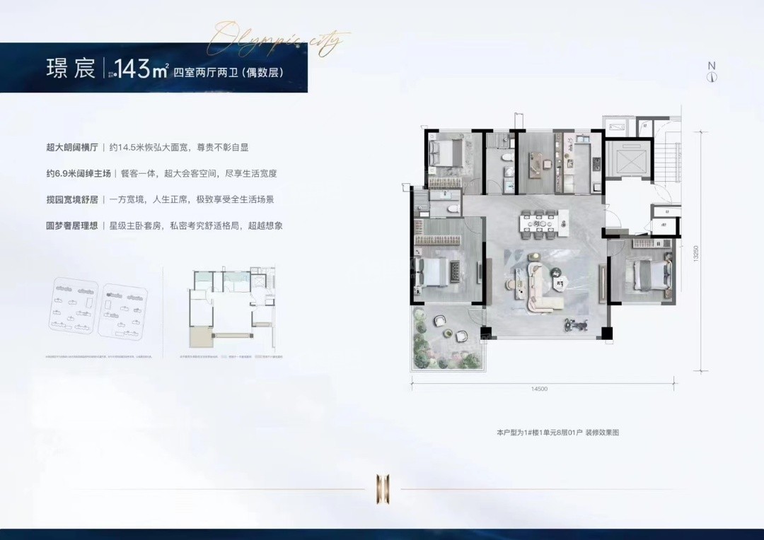 位于西安国际港务区奥体板块的龙翔奥城珑璟府,是龙翔控股集团继多个热销项目后推出的第四代住宅升级作品。项目占地约77亩,规划17栋小高层,容积率2.5,绿地率35%,主打建面约128-168㎡户型,以空中庭院设计为核心亮点,定位为奥体板块的改善型住宅标杆。